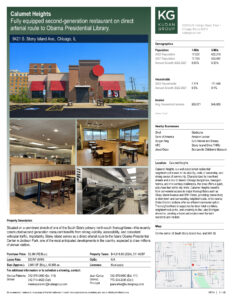 Property Description: Fully equipped second-generation restaurant on direct arterial route to Obama Presidential Library.