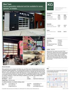 | Rare opportunity to own a prime property in Chicago’s red-hot West Loop at 116 N. Aberdeen, just off the corner of Randolph Street and next door to McDonald’s global headquarters. The existing buildout includes a full commercial kitchen with hood and black iron, 2 bars, 4 bathrooms, and a large garage door that opens to sidewalk patio area ideal for dining. Zoned DX-3, this site offers incredible flexibility for office, retail, dispensary, or continued restaurant/bar/nightclub use. Located in one of the city’s most vibrant and fastest-growing neighborhoods, this property is surrounded by the best restaurants, luxury developments, and major corporate offices-making it an ideal opportunity for investors, developers, or owner-users looking to capitalize on a high-traffic, high-visibility location. |