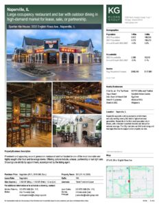 | Property/Business Description: Large occupancy restaurant and bar with outdoor dining in high-demand market for lease, sale, or partnership. |